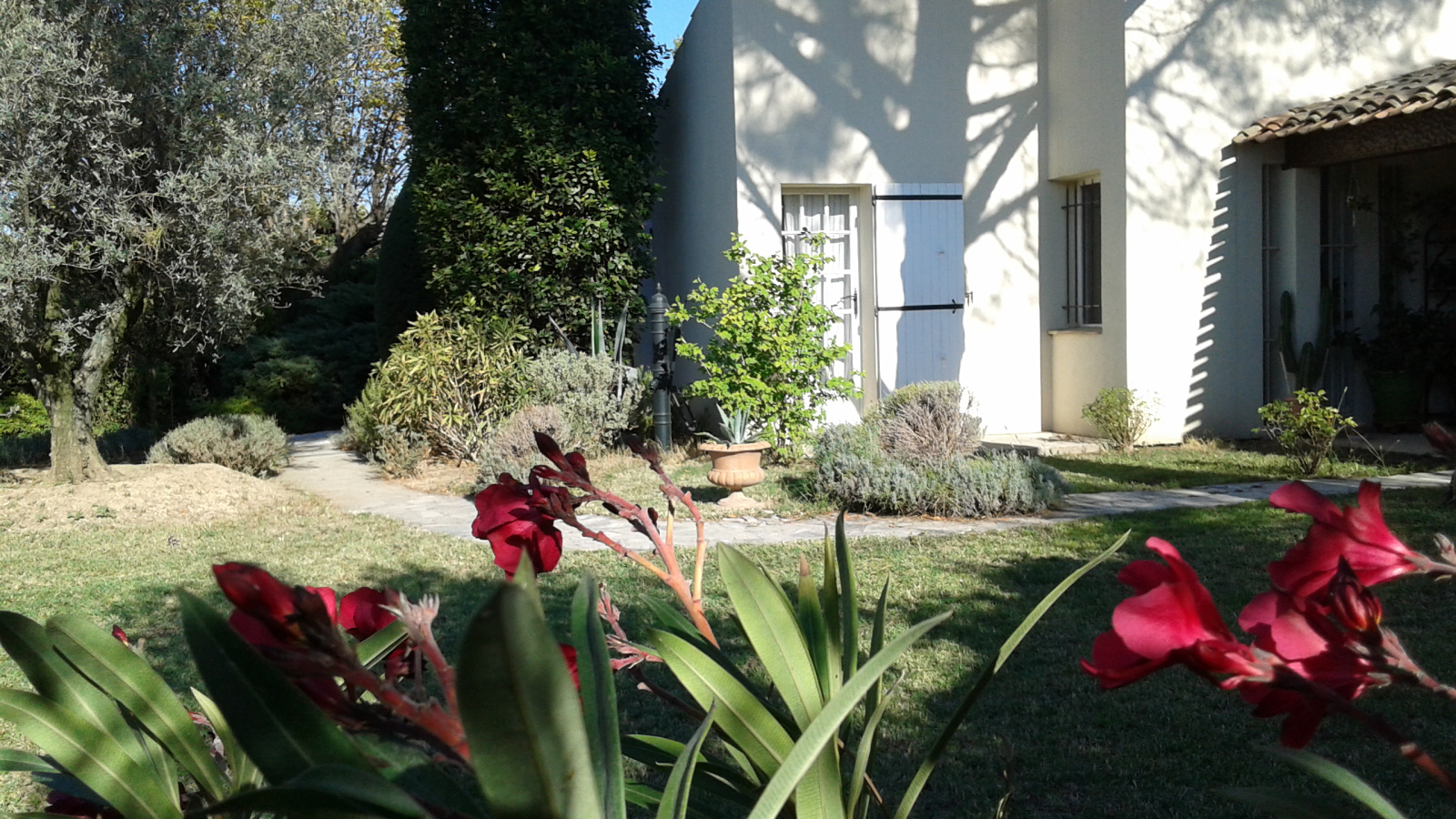 Eguilles - Dans un quartier résidentiel recherché du village, maison de plain pied de style provençal conçue dans les années 70 par un architecte renommé Jean-Luc Massot de 130 m2 env. plus 50 m2 d'annexes composée d'une entrée desservant les autres pièces de la maison comme un vaste séjour avec cheminée et mezzanine donnant sur le jardin par des portes fenêtres, une cuisine équipée, 3 chambres et deux salles de bains/eau. Ce bien plein de charme repose sur un terrain paysagé, clos et planté de diverses essences méditerranéennes de 1100 m2. Le calme absolu règne sur ce lieu à la vue magique ; Ce bien est doté du tout à l'égout, de la proximité de toutes les commodités, du gaz de ville, de l'eau de la ville, du canal de Provence, d'un chauffage central au gaz à condensation et d'un garage, d'une remise et de parking intérieur. DPE : C. Le terrain est piscinable. Le prix de vente TTC est de 795 000 euros. Vendu en 2018