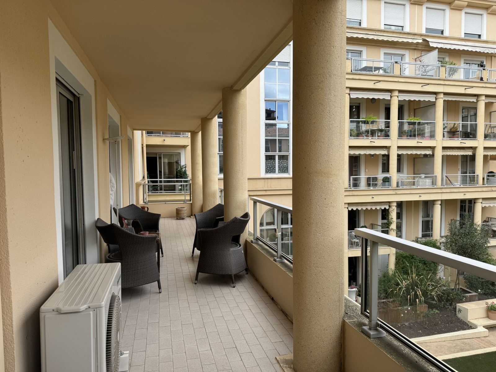 En vente en plein centre ville d’AIX EN PROVENCE, à 2 pas du cours Mirabeau, dans résidence sénior de standing de 1990 avec de belles prestations ; Cet appartement de type T3 de 61,02m² et rénové en 2018 est situé au 2ième étage avec ascenseur ; Il est orienté nord ce qui est un vrai plus ; Il est au calme et la terrasse qui longe toutes les pièces de l'appartement donne sur les jardins intérieurs de la résidence ; Il se compose d'une entrée avec placards, un wc indépendant avec lave-mains, un grand salon/salle à manger et une petite cuisine, une chambre avec penderie, une petite chambre/bureau avec placards et une salle d’eau avec douche à l’italienne ; L’appartement est équipé de stores manuels, d'un radiateur dans la chambre principale et une climatisation réversible dans la pièce de vie ; Une place de parking au 2ième sous sol et une cave viennent compléter ce bien.