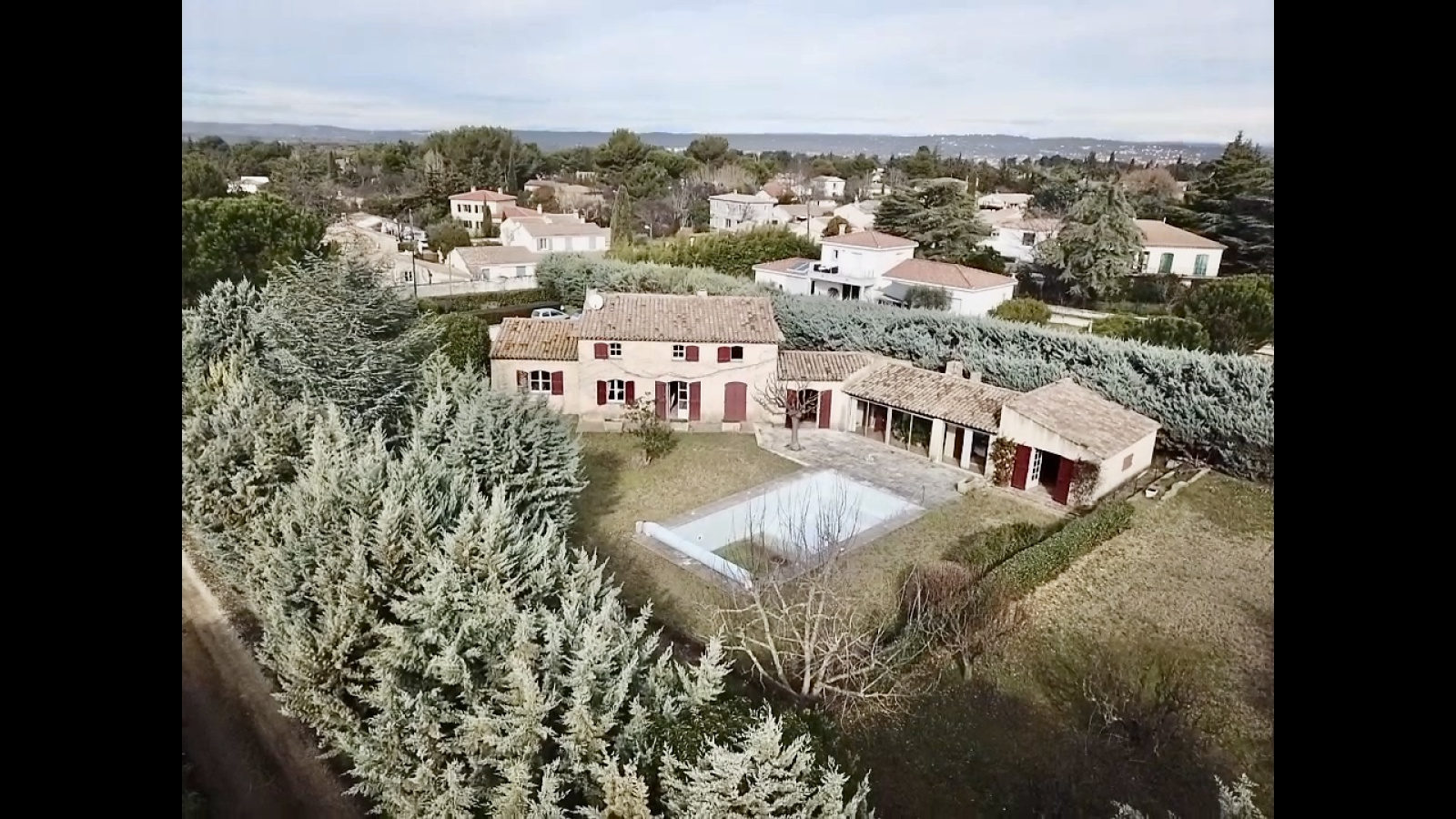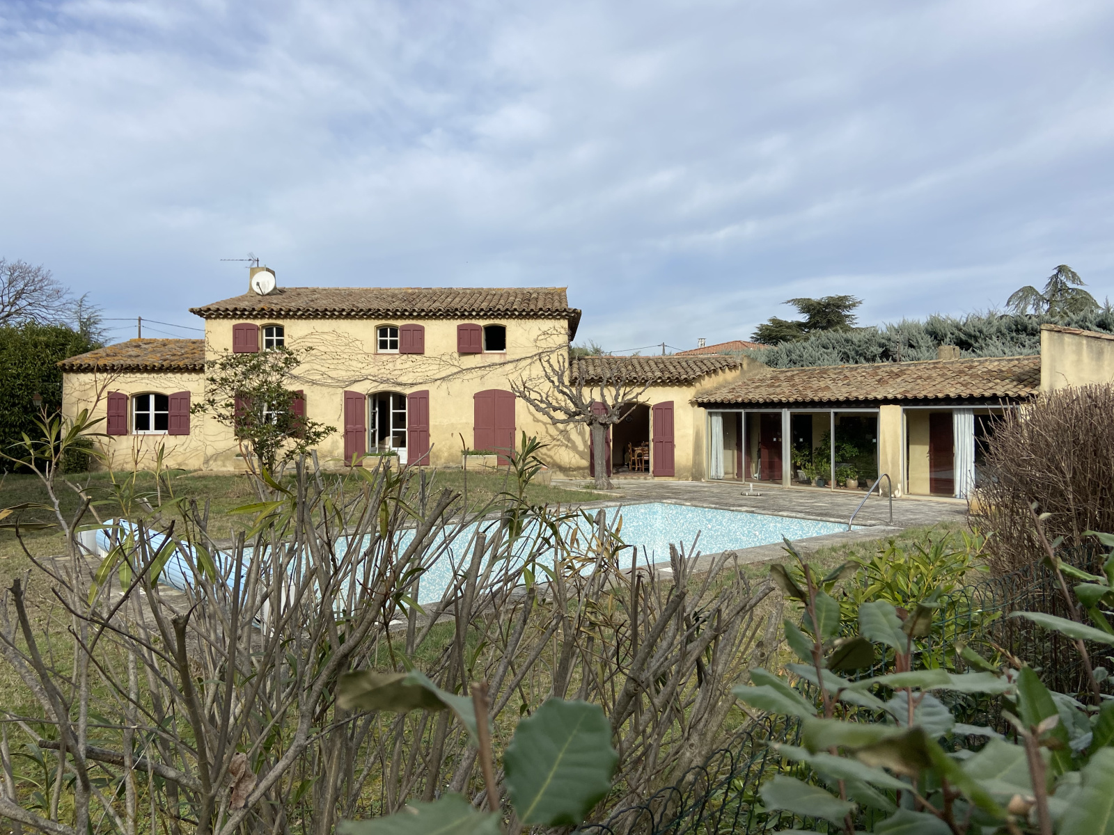 Exclusivité - Luynes commune d'Aix en Provence, A 5km du Cours Mirabeau - Cette importante propriété majoritairement de plain pied se situe dans un quartier très résidentiel de la commune de Luynes ; Elle est orientée sud/est ; Elle date des années 70 et est de construction traditionnelle ; Elle se compose d'une entrée avec son wc invités et son vestiaire, d'un salon/cheminée (28,32m2), d'une salle à manger (21m2), d'une cuisine (18,95m2), d'un office (7,93m2), d'une chambre (18,95m2) et de sa salle de bains (10m2) et d'un bureau (17,49m2) ; A l'étage, nous avons deux chambres (13,65 et 15,86m2), une salle de bains , un wc, un dressing et un vaste dortoir de 35,47m2 ; Une annexe (79,93m2) offre un salon, une cuisine/salle à manger, une chambre et sa salle de bains et son wc ; Cette dépendance s'ouvre sur une véranda ; Un sous-sol de 130m2 est formé d'un garage deux places, d'un local technique et de deux caves ; Cette ensemble orienté Sud/Est fait face à une piscine traditionnelle (5,5x9,5) carrelée, sécurisée avec une bâche et repose sur un magnifique terrain rectangulaire de 3885m2 ; L'assainissement est collectif ; Le chauffage est est au sol et provient d'une pompe à chaleur ; L'eau provient du canal et de la ville ; DPE : B et A ; La zone du PLU autorise le détachement d'une parcelle de 1250m2 avec une surface plancher de 187m2 ; La taxe foncière est de 2500 euros ; Proximité écoles et lycées : bus n°14 pour le lycée international et la gare routière d'Aix et à 1,5km d'IBS, du CIPEC et de Saint François d'Assise ; Une remise aux goûts du jour s'impose ; L'aéroport est à 20mn et le TGV à 10mn ; Le prix de vente total est de 1 260 000 euros ; Les honoraires de 5% soit 60 000 euros sont à la charge de l'acquéreur. Vendue en 2021 Bien au calme absolu à proximité des toutes les commodités.