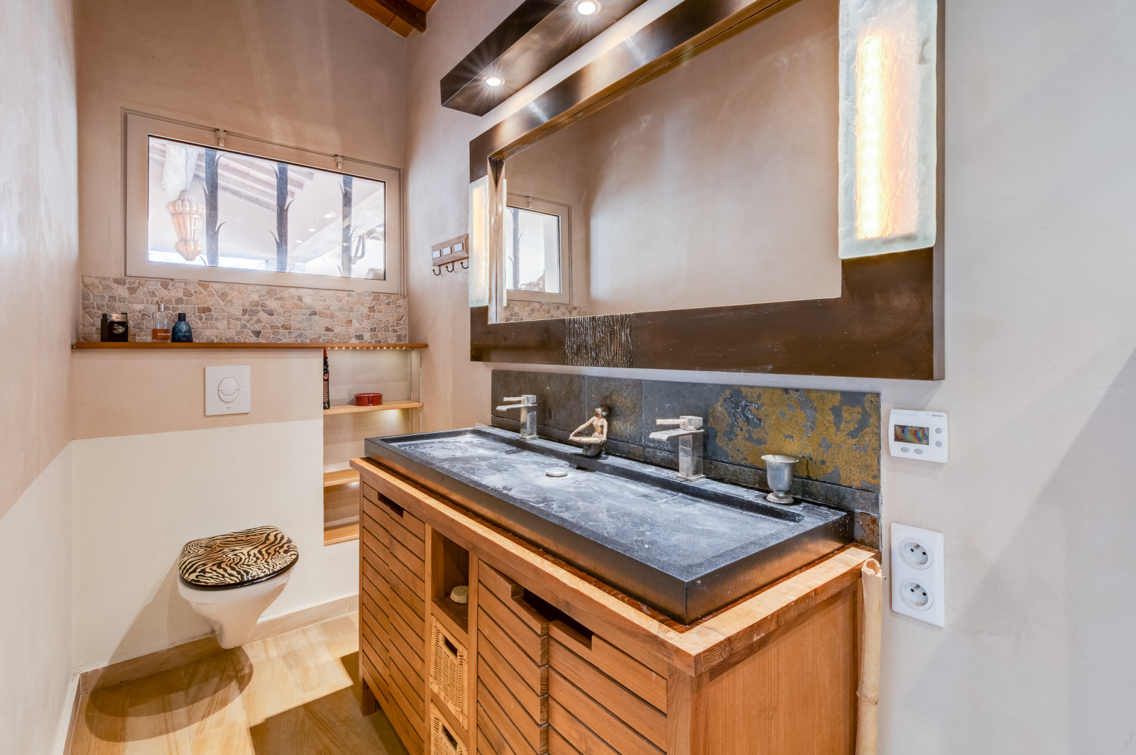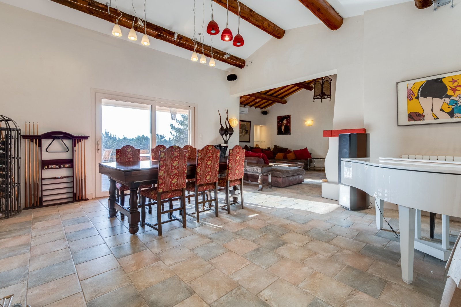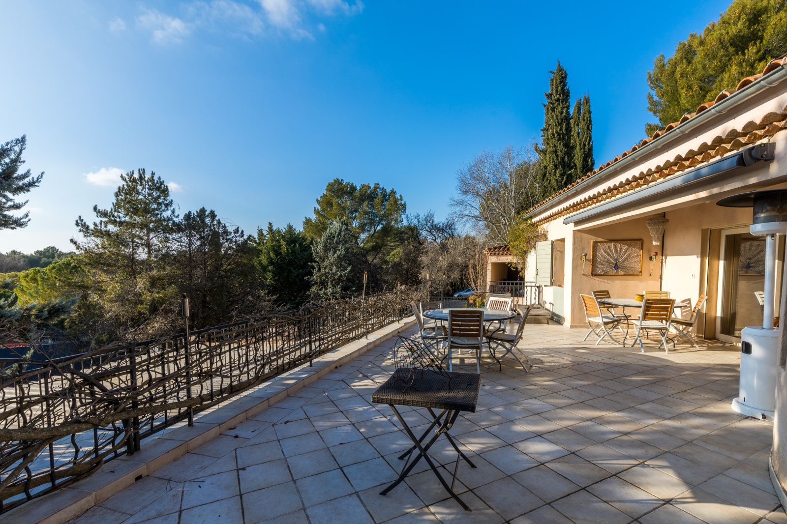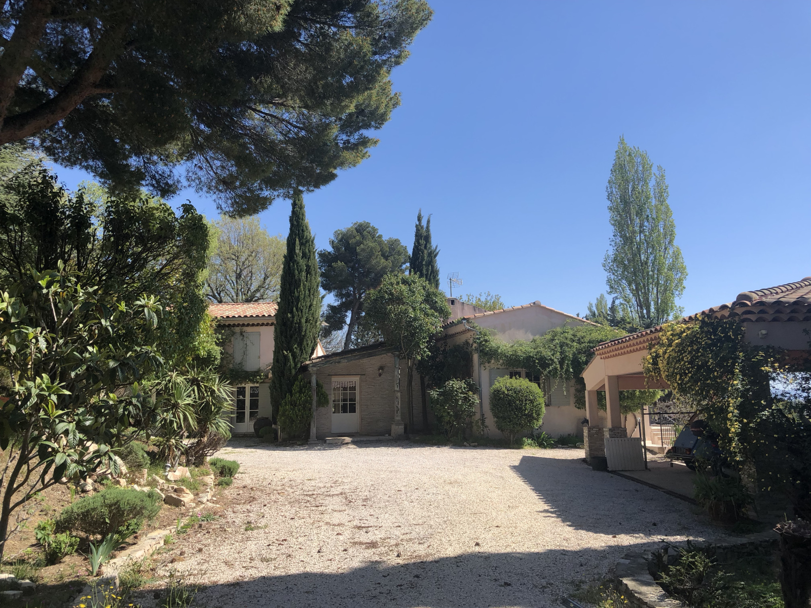 Aix en Provence ouest exclusivement à l?agence ? Cette vaste maison familiale, majoritairement de plain pied, est située dans le meilleur complexe de loisirs d'Aix-en-Provence (à 10 mn du centre historique). Il comprend un golf 18 trous, 3 piscines, 7 tennis, un restaurant et un club hippique. Les 310 m2 habitables de la maison se répartissent de la façon suivante : Au rez-de-chaussée, une entrée, une salle à manger, un espace de vie lumineux de 70 m2 ouvert sur une terrasse plein sud de 180 m2, une cuisine équipée donnant sur une autre terrasse semi couverte de 90 m2, un bureau, un espace nuit composé d'une suite parentale avec sa salle d'eau/wc et une chambre commandée. A l?opposé, toujours au RDC, on trouve un autre espace nuit constitué de 2 chambres dont l?une avec une mezzanine, d'une salle de bains/Eau/wc et enfin une buanderie et un wc. A l?étage, se trouvent une chambre de 40 m2 ainsi qu?un bureau avec sa petite terrasse. L?ensemble est complété, à l?extérieur, par un studio totalement indépendant de 20 m2, un garage ouvert pour deux voitures et deux motos, un espace ouvert et couvert de 75 m2, un garage fermé double de 80 m2 avec une cave à vin. Le parc de 5 000 m2 (piscinable) est éclairé et planté d'essences provençales anciennes. Il accueille un terrain de boules ombragé sous les chênes et éclairé pour les longues soirées d'été ; La propriété bénéficie de deux entrées avec des portails automatiques ; Toiture et adduction d'eau neuves ; Chaudière au gaz neuve ; DPE : C et C. Le coût énergétique total s'élève à 6000 euros ; Taxe foncière : 4194 euros. Le prix de vente TTC est de 1 440 000 euros. Bien familial dans un lieu magique.