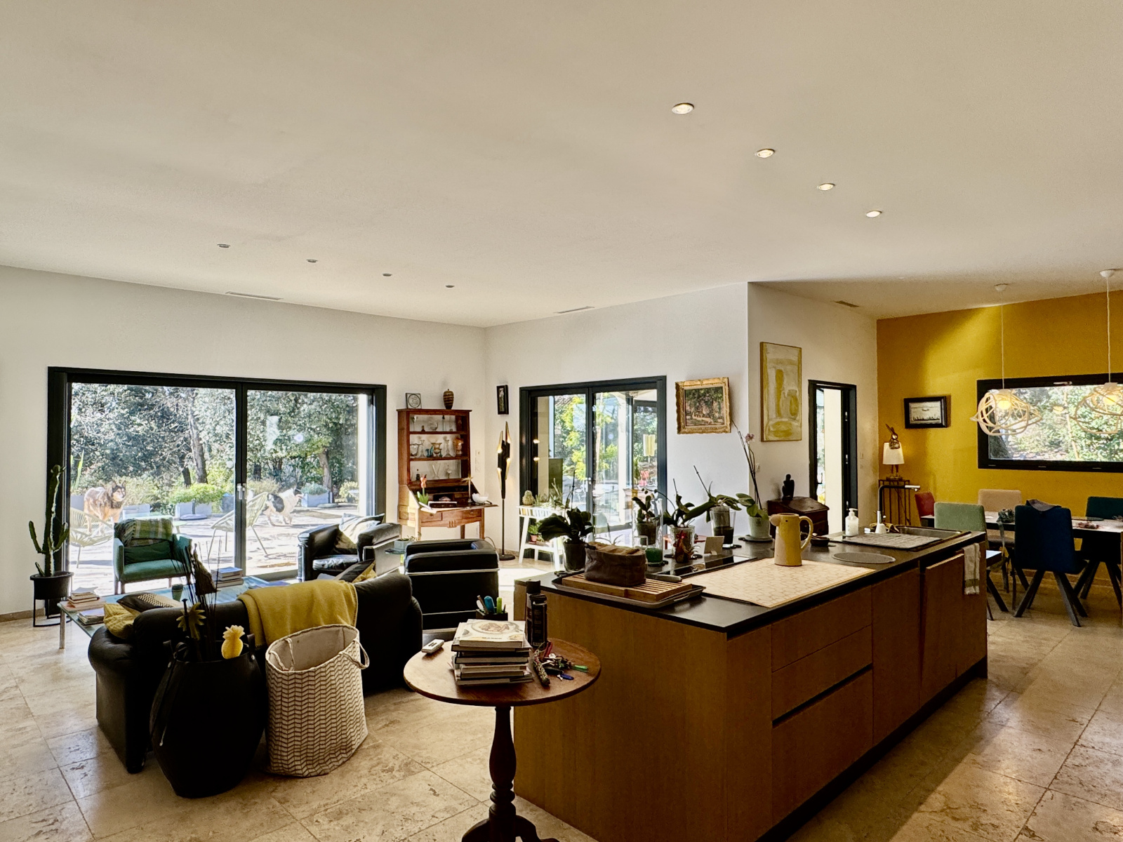 Aubussargues à 1h du TGV d'Avignon, à 30mn du TGV de Nîmes et à 10mn d'Uzes - Cette ravissante maison de 188m2 env. a été construite en 2017 avec de beaux matériaux ; L'aménagement intérieur est raffiné, haut de gamme et très tendance ; Elle se compose d'une entrée, d'une pièce de vie (62m2) avec une cheminée insert (92,4m2) et une cuisine totalement équipée ouvrant sur une vaste terrasse plein sud, une vaste arrière cuisine et buanderie, une belle verrrière qui abrite un jacuzzi techniquement sohistiqué, un wc indépendant avec lave-mains, une salle d'eau, 2 chambres avec des dressings et 1 chambre parentale avec sa sdb/eau/wc et son dressing ; Nous avons des terrasses au sud, à l'ouest et des ombrages variés ; A cette maison principale s'ajoute un 2ième plain pied de 77,24m2 avec garage (16,52m2) ; Il est composé d'une pièce de vie/cuisine ouverte équipée, de 2 chambres, 2 pièces d'eau et un cellier ; Nous sommes dans un endroit boisé de vieux chênes peuplés d'oiseaux ; Le terrain naturellement paysagé s'étend sur 3000 m2 env. ; La terrasse accueille une piscine coque chauffée de 8x4 avec nage à contre courrant et balnéo ainsi qu' un volet électrique de sécurité ; Nous avons, en contrebas, un charmant petit bois de chênes qui est un bel espace de jeux, de détente, de fraîcheur ... ; Le chaud et le froid se fait par des blocs de climatisation et une cheminée insert en plus dans la maison principale ; L'assainissement est collectif et l'eau est de la ville ; DPE : B ; L'espace extérieur est naturel et étudié. Un bâti hors d'eau/hors d'air de 15m2 apporte un espace supplémentaire ; Les informations sur les risques auxquels ce bien est exposé sont disponibles sur le site Géorisques. Le prix de vente total s'élève à 989 475 euros.
